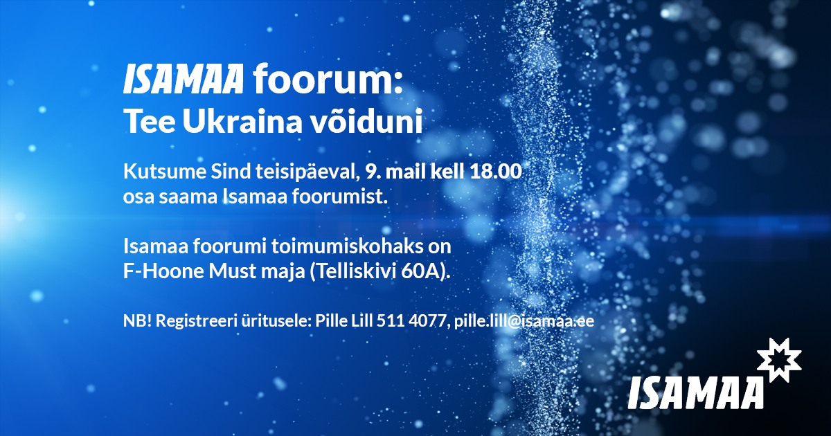 Tänavu 9. mail korraldatakse Põhja-Tallinnas esimene Isamaa foorum. Selle pealkirjaks on „Tee Ukraina võiduni”. Äsjane välisminister, praegune riigikogulane Urmas Reinsalu, viitseadmiral Tarmo Kõuts ja kaitseväe peastaabi kommunikatsiooniekspert Ingrid Mühling arutlevad seal selle üle, mis juhtub sõja käigus edasi; mida peaks lääneriigid Ukraina toetamiseks veel tegema; milline on infosõda Ukrainas; milliseks kujuneb sõjajärgne maailm. Foorumi toimumispaigaks on F-Hoone Must maja (Telliskivi tn. 60 A), algusajaks kl. 18.00.