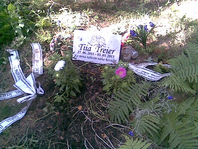 „Ka mina tahtsin näha kevadet” - vägagi kõnekas hauakiri justiitsmõrva ohvrina hukkunud Tiia Treieri kalmul. Hauakirja sõnastanud isa maetakse ta viimse tahte kohaselt pisitütre kõrvale. Pilt: Heiki Treieri arhiiv