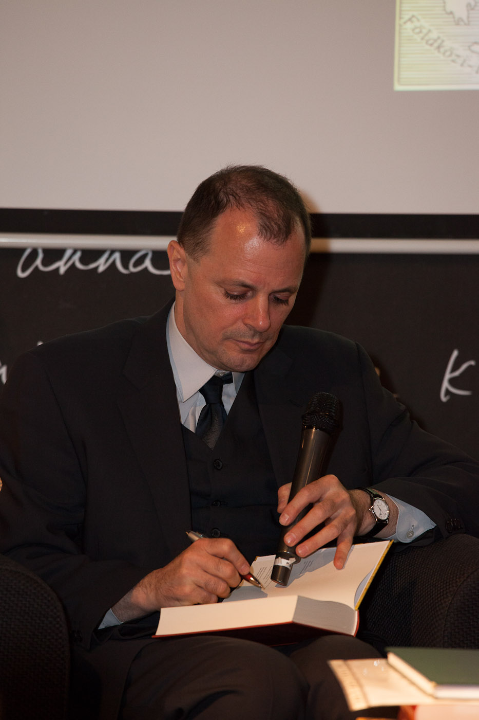 2012. aasta aprilli lõpupäevil Tallinnas ja Tartus oma Bütsantsi-raamatu eesti tõlke esitlustel esinedes koges Gecse korduvalt, et eestlased peavad teda omainimeseks. Ja seda sellele vaatamata, et ta eesti keelt peaaegu ei oska. Kui täpne olla, siis oskab peamiselt vandesõnu – neid, mida õppis eesti poistelt, kui lapsena Käsmu- ja Loksa-kandis suvitamas käis. Senikaua kui sõnavara pole kas või natuke laiem, on aga arukas kasutada suhtlemiseks siiski mõnda muud keelt.