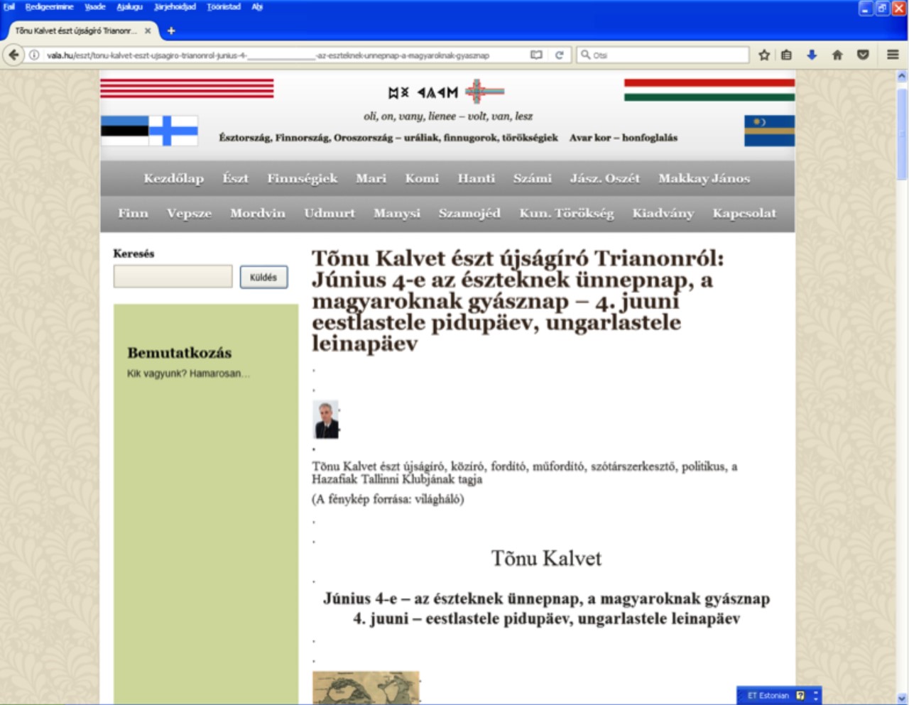 Rahvuslaste Tallinna Klubi kodulehel 4. juunil 2020 ilmunud Ungari-teemaline kirjutis ilmus 20 päeva hiljem Ungaris. Pealkirja „4. juuni – eestlastele pidupäev, ungarlastele leinapäev” kandva arvamusloo ungari tõlge avaldati Ungari internetilehel „Vala” (asukoht: vala.hu).